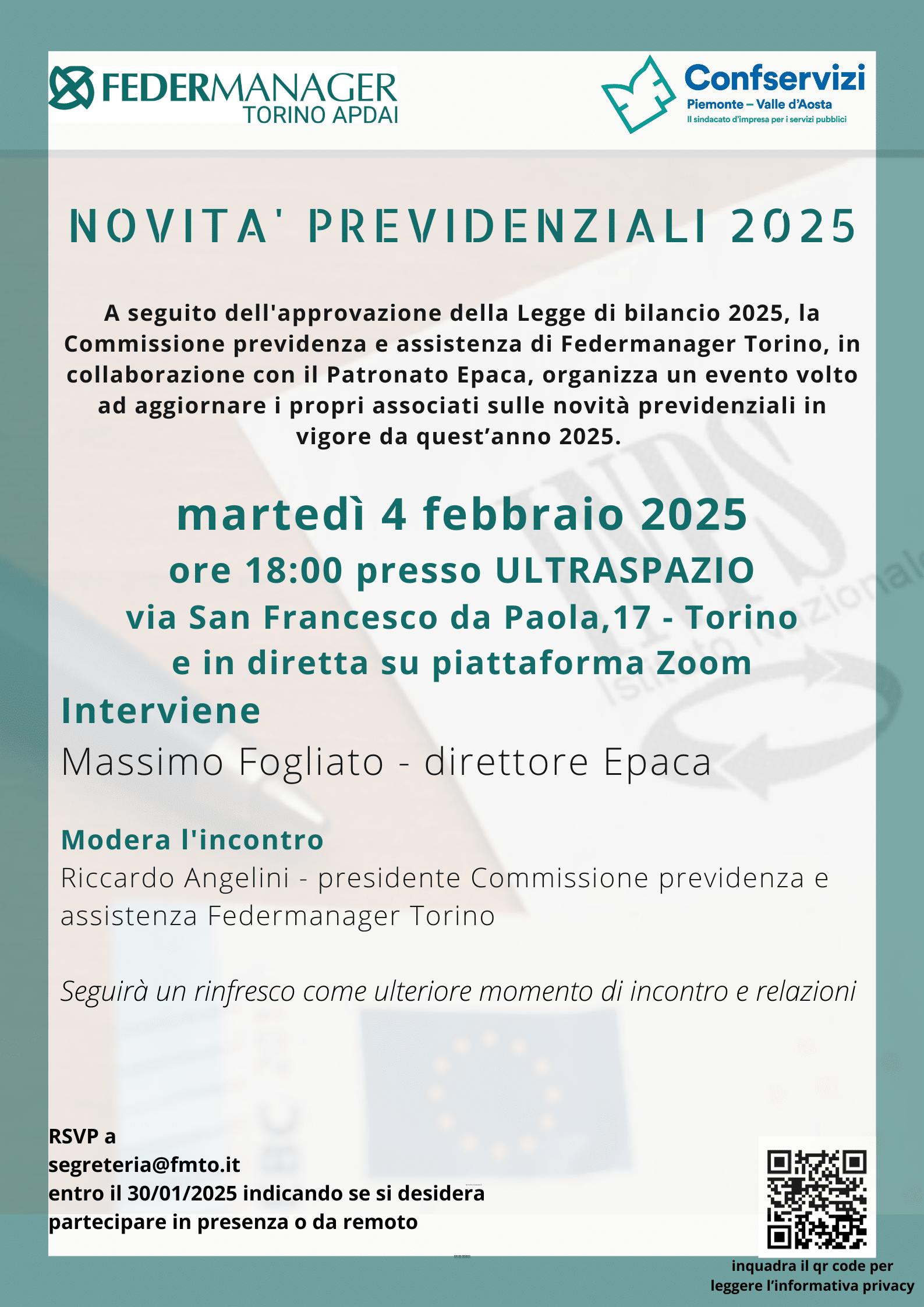 Federmanager Torino ha il piacere di invitarVi all’evento